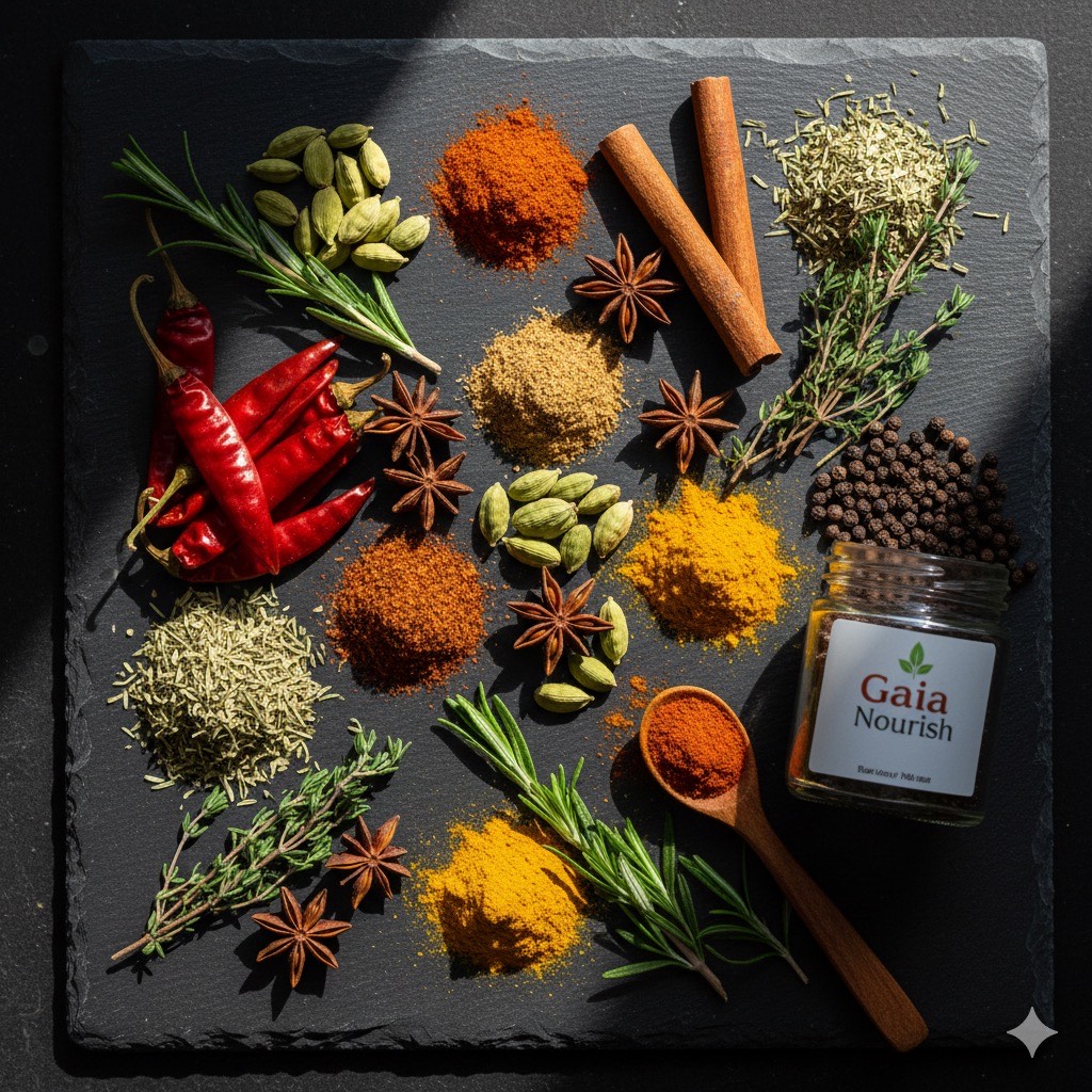 Culinary Exploration: Embark on a flavorful journey with Gaia Nourish’s exotic spice blends, unlocking new dimensions of taste and wellness in every dish.